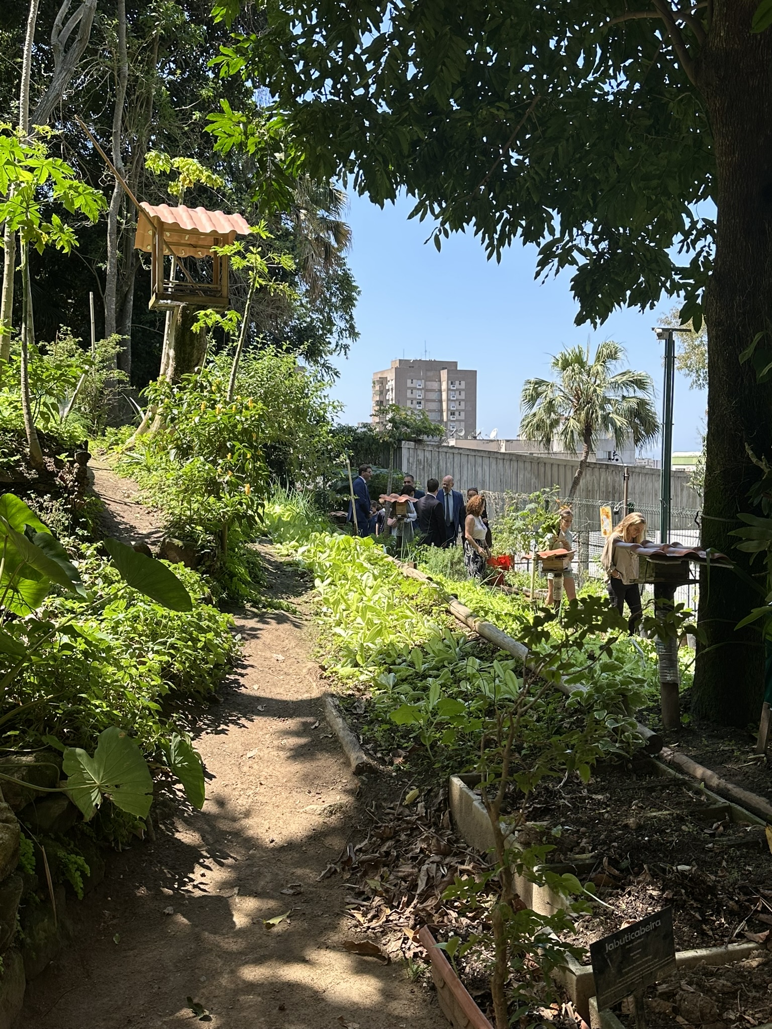 La mise en place de la horta a nécessité des travaux importants : sécurisation du terrain, installation de terrasses, système d’irrigation alimenté par une source naturelle et organisation du calendrier de production. Aujourd’hui, la récolte atteint déjà plusieurs milliers d’unités de légumes, complétée par des plantes comestibles et une pépinière d’arbre de la Mata Atlântica