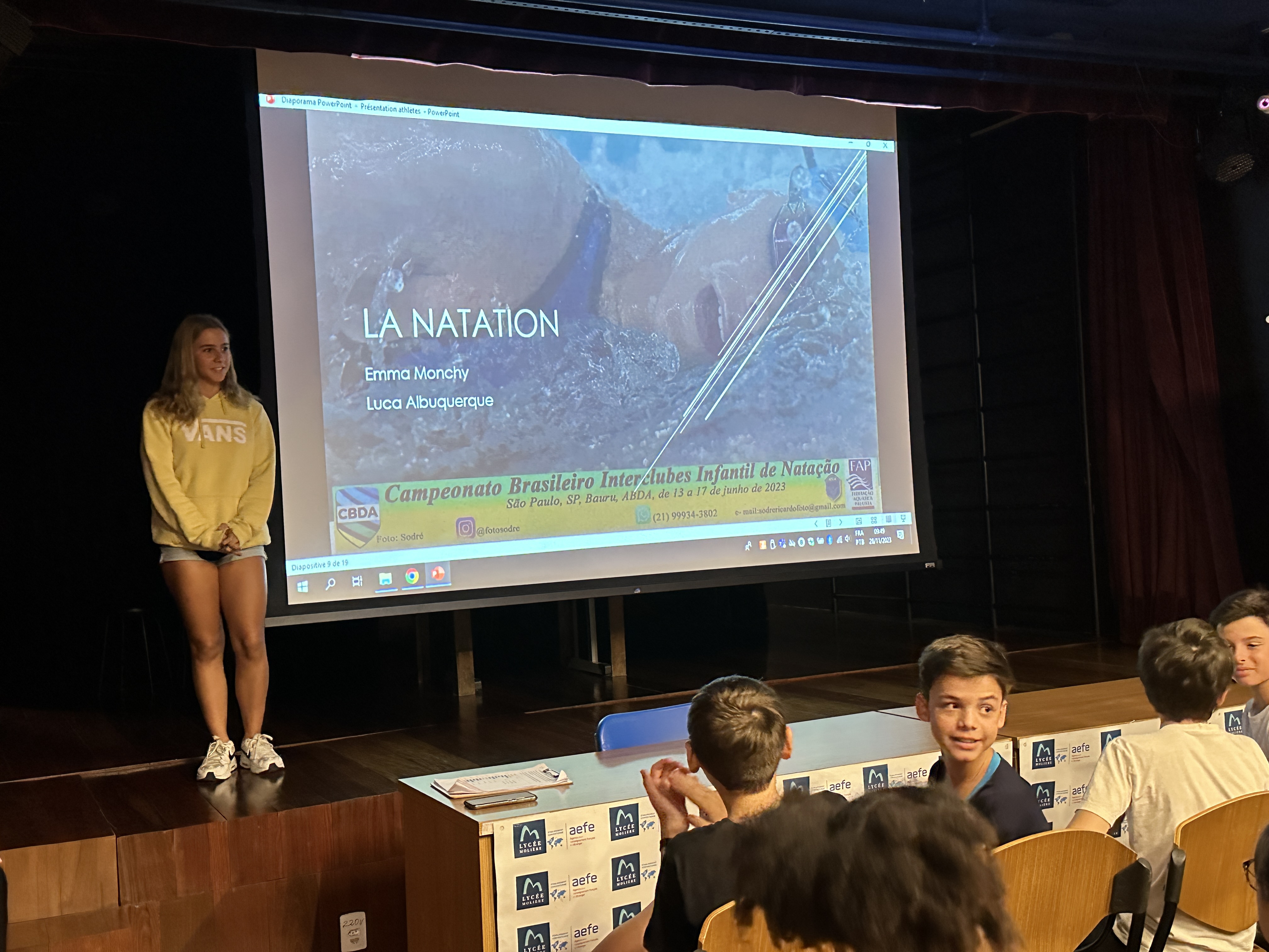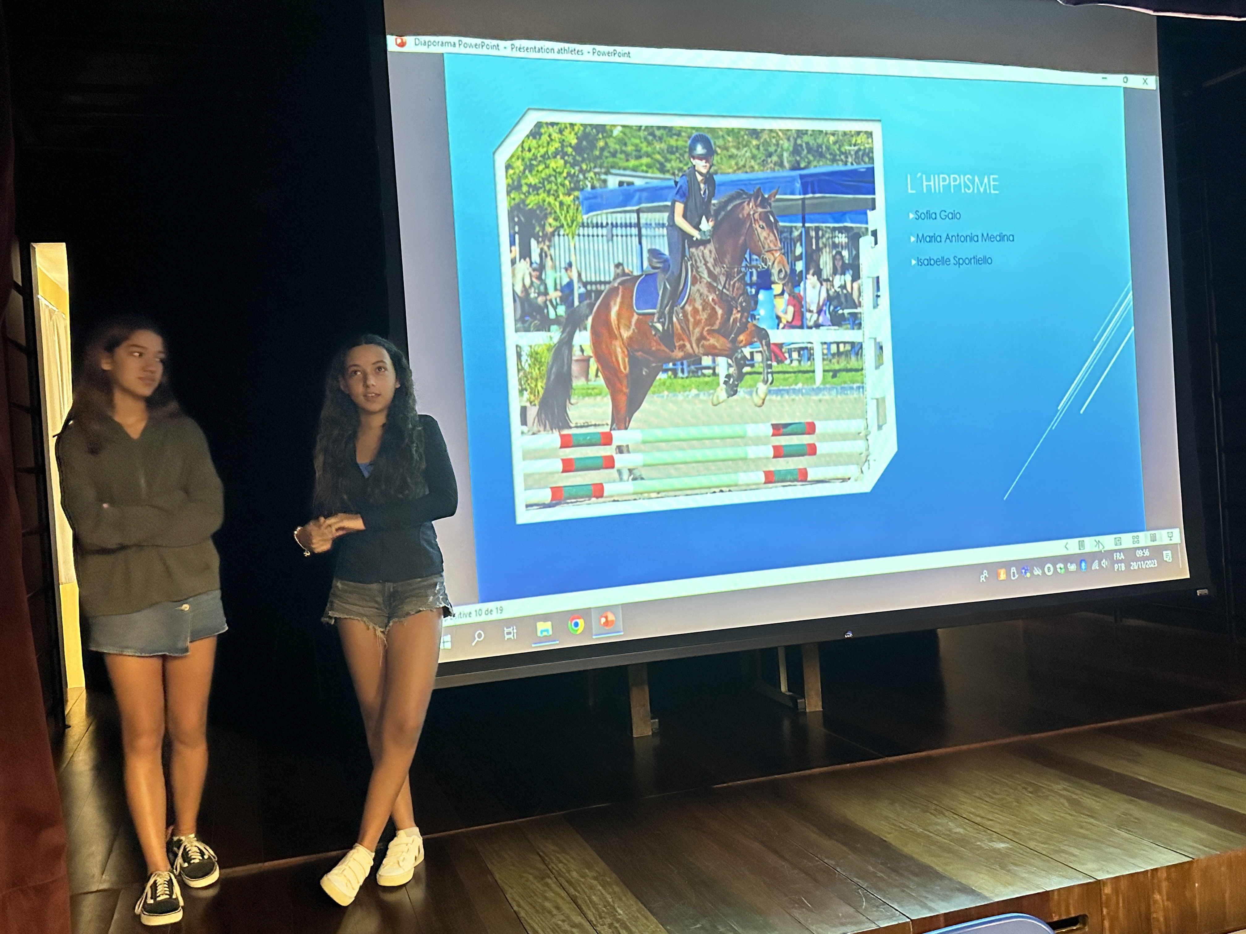 Como parte da "Semana dos liceus franceses no mundo", ontem, alguns de nossos alunos-atletas de alto nível deram uma palestra para os alunos do 6º ano do ensino fundamental II sobre seu compromisso com suas respectivas atividades.